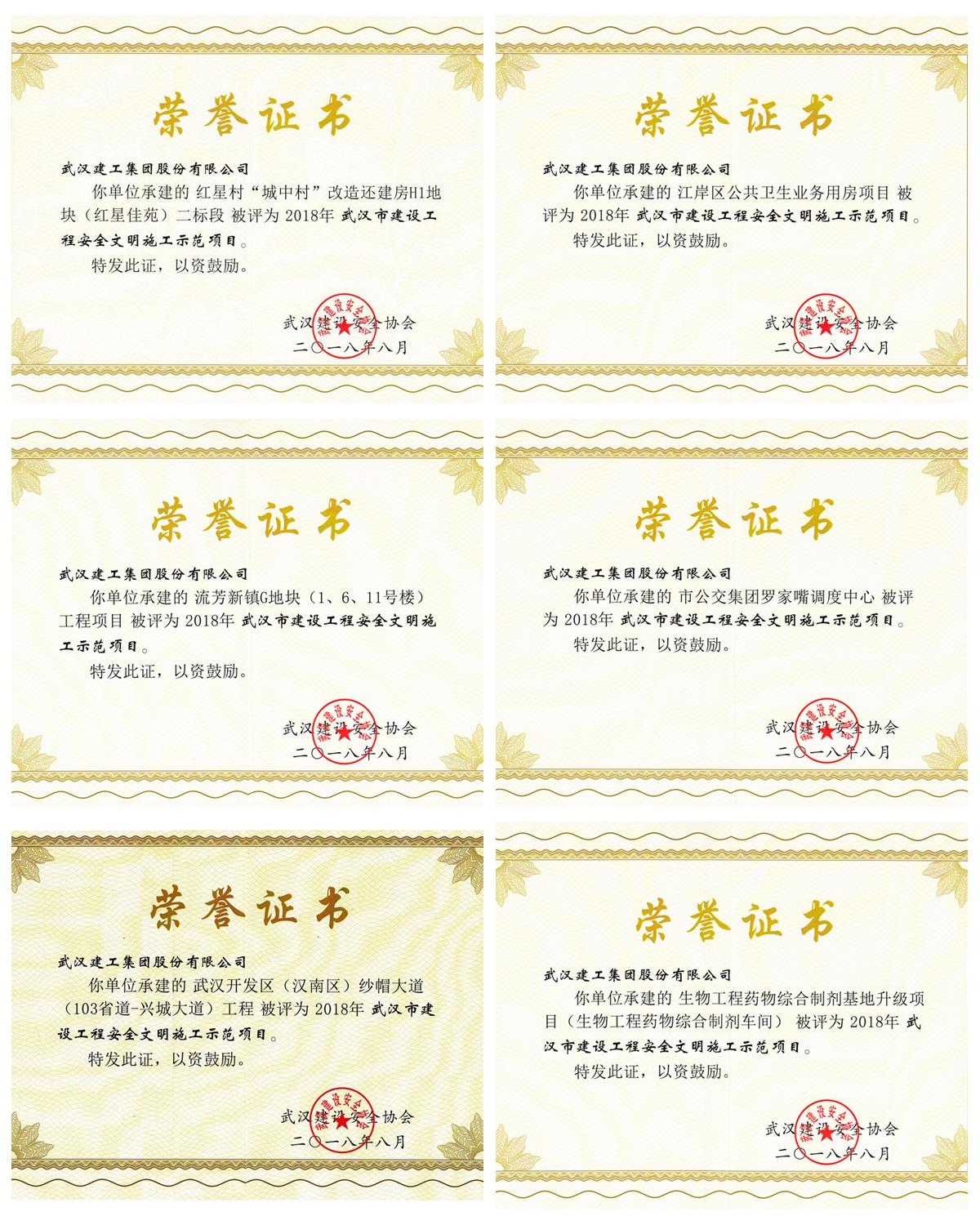 近日,武漢建設(shè)安全協(xié)會通報(bào)表彰“建筑施工安全生產(chǎn)標(biāo)準(zhǔn)化示范工地”,武漢建工有六個(gè)項(xiàng)目獲此殊榮,被授予“2018年上半年武漢市建設(shè)工程安全文明施工示范項(xiàng)目”(黃鶴杯)稱號。 六個(gè)獲獎(jiǎng)項(xiàng)目分別為: