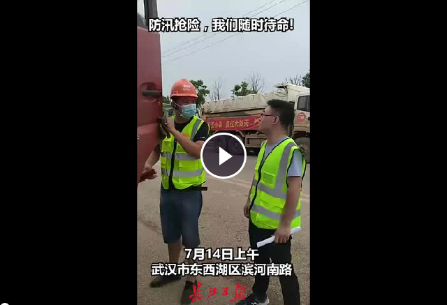 武漢建工集團(tuán)防汛搶險第一分隊的260多位隊員與數(shù)十臺搶險車輛及機(jī)械設(shè)備,在武漢市東西湖區(qū)濱河南路集結(jié)待命。