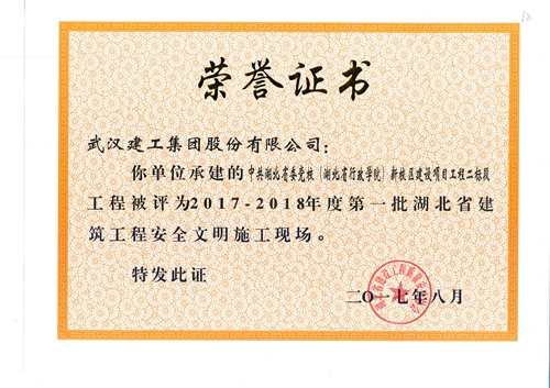 2017年,武漢建工集團(tuán)進(jìn)一步加強(qiáng)施工現(xiàn)場安全文明施工管理,取得顯著成效。日前,根據(jù)《湖北省建筑工程安全文明施工現(xiàn)場評審辦法》,湖北省建設(shè)工程質(zhì)量安全協(xié)會表彰了一批在湖北省安全文明施工中有重要貢獻(xiàn)的施工項目。集團(tuán)“武漢亞洲醫(yī)院”等7個工程項目獲“2017-2018年度第一批湖北省建筑工程安全文明施工現(xiàn)場”榮譽(yù)證書。